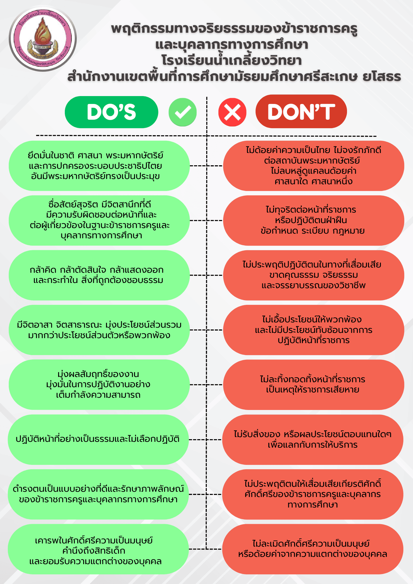 O18 : มาตรการส่งเสริมคุณธรรมและความโปร่งใสภายในสถานศึกษา
